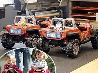 But the guests of honor seemed to be having the best time. Preston and Jayden drove around the party in mini motorized cars, which were customized Ed Hardy by Christian Audigier. The cars featured tattoo-inspired decals, Ed Hardy air fresheners and personalized license plates. To keep with the party's theme, the cake was in shape of a yellow truck.